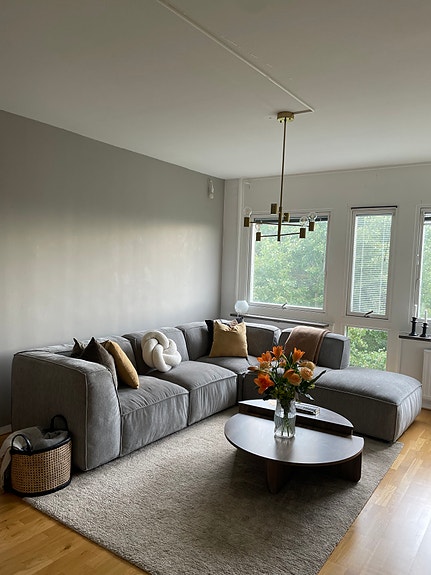 Soffa med divan grå tyg