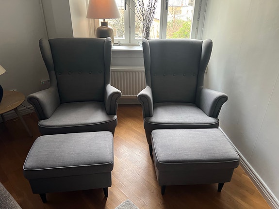 Fåtöljer i grått tyg