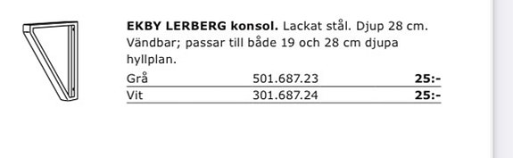 100 kr6 st Ekby Lerberg konsoler IKEAGöteborg29 marKöp nuLastbil i rörelseKan skickasLägg till i favoriter.Öppna annons