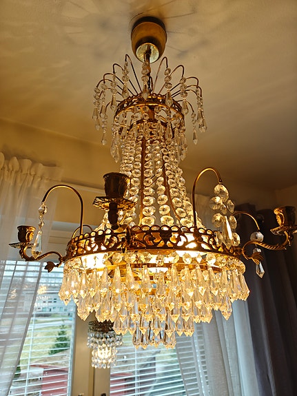 SäljesKristallkrona mässing mellan stor (empire stil 1900tal)Göteborg4 dagarLastbil i rörelseKan skickasLägg till i favoriter.