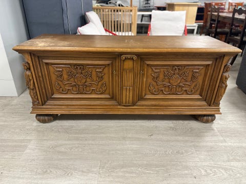 2 000 krGrönmålad träbyrå med två dörrar och dekorativa utsmyckningarGöteborg14 timLägg till i favoriter.