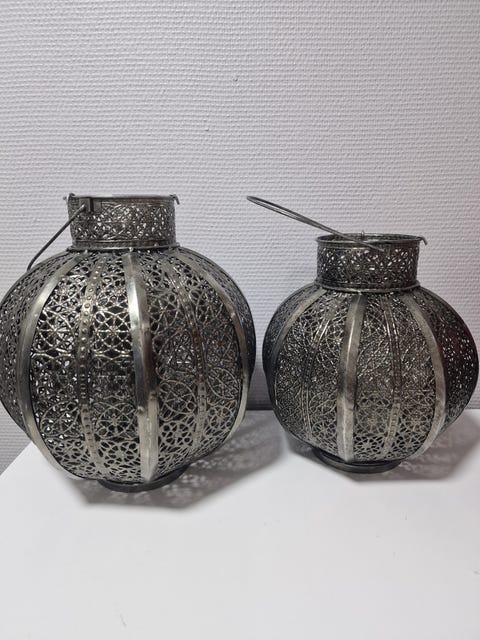 Två ljuslyktor i metall
