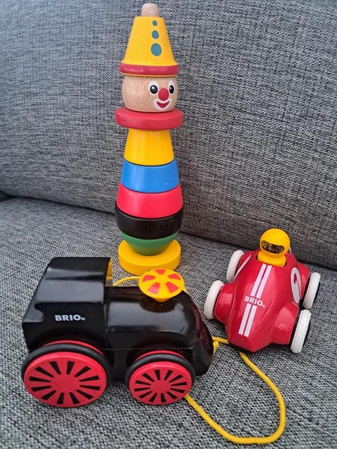 250 krBrio clown, drag-lok och bil med push and go. BRIOTidaholm4 novLastbil i rörelseKan skickasLägg till i favoriter.