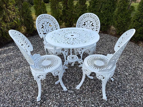 4 500 krVit trädgårdsgrupp i gjutjärn med runt bord och 4 stolarÖrebro6 timLägg till i favoriter.Öppna annons