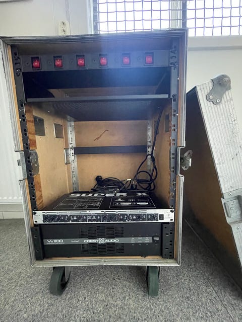 Rack med extra prylar.