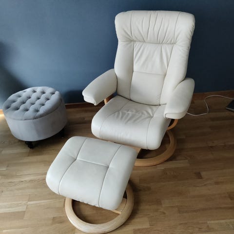Skin fåtölj med fotpall