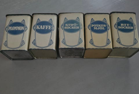 Antika gamla plåtburkar