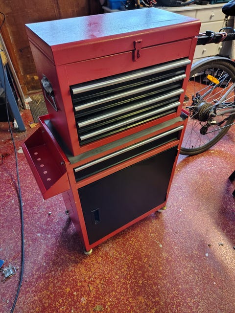 Träskåp med lådor och nycklar