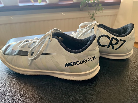 100 krNike MercurialX CR7 fotbollsskor inomhus vitKalix6 dagarKöp nuLastbil i rörelseKan skickasLägg till i favoriter.