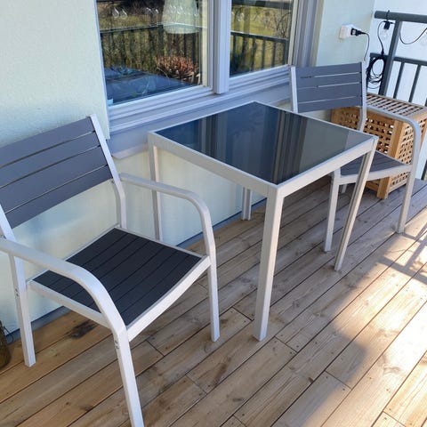 2 000 krCafémöbelset bord och 2 stolar ljusgrå metall grå sitsarTäby, Stockholm5 dagarLägg till i favoriter.Öppna annons
