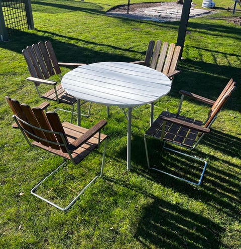 15 500 krGrythyttan ute grupp 4 st a2 stolar bord 120 cm i diameter.Stockholm, Stockholm19 marLägg till i favoriter.Öppna annons