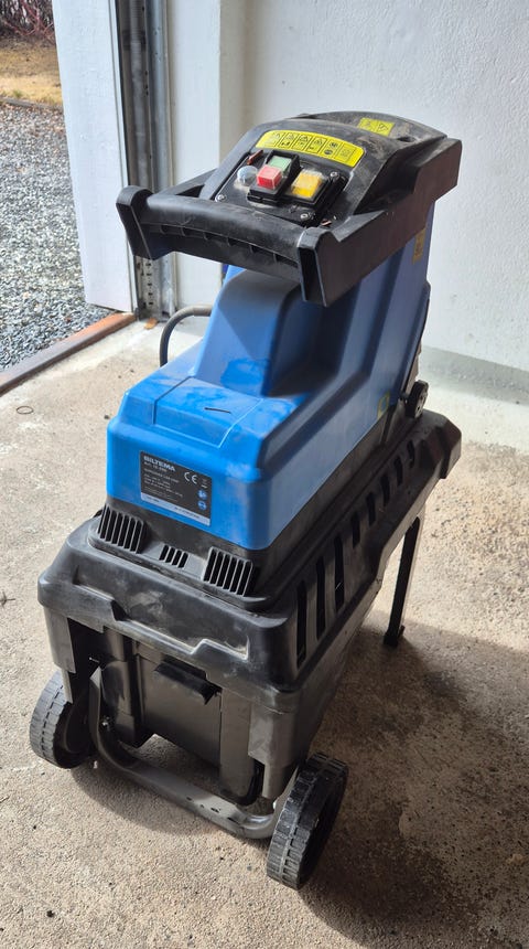Elektrisk kompostkvarn / flismaskin blå med uppsamlare