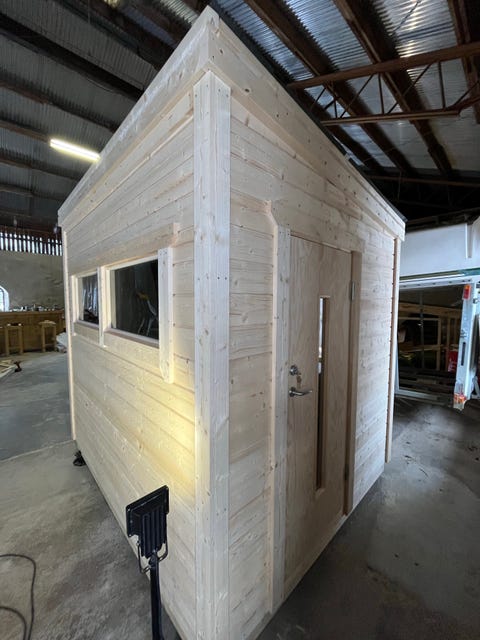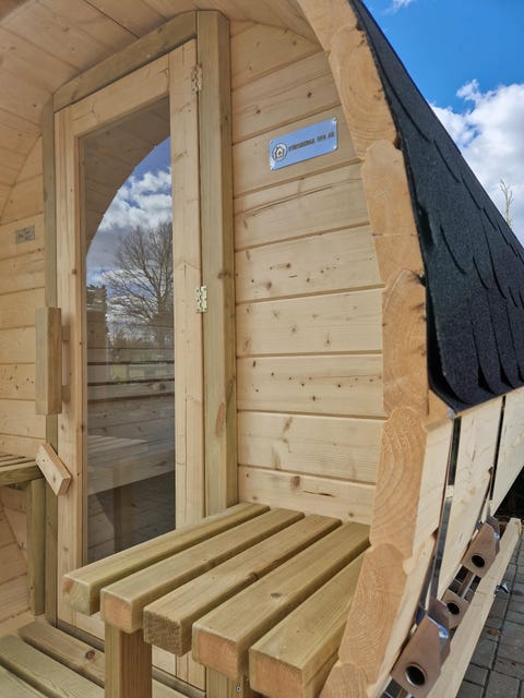 Bastu i cederträ med glasdörr