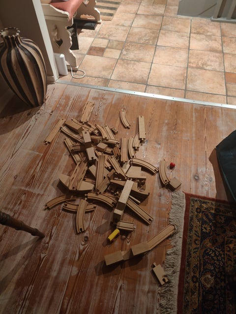 En tågbana eller bilbana i trä kan vara en älskad leksak i många år