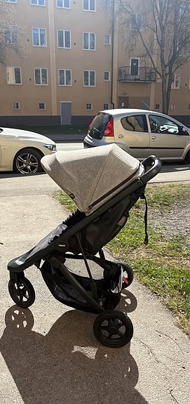 Thule joggingvagn trehjuling svart+regnskydd