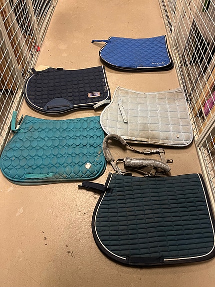 Hästsaker – schabrak, benskydd, gjordar och täcken hjälmar mm