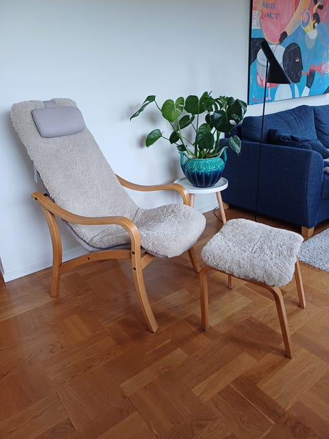 Fårskinnsfåtölj Anne med fotpall