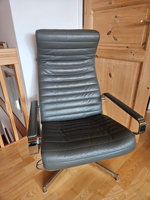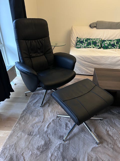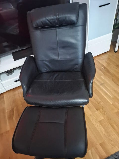 Gratis läderfåtölj med fotpall
