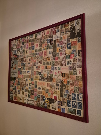 Unik tavla med vintage frimärkessamling – perfekt för samlare & retroälskare!