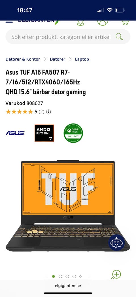 10 000 krGaming dator - 2TB SSD - RTX 4060 - AMD Ryzen 5 7600 3.8GHz - 32GB RAM 5200MHz AsusTorshälla27 novLägg till i favoriter.