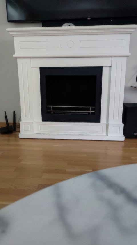 Vit eldstadskamin fristående
