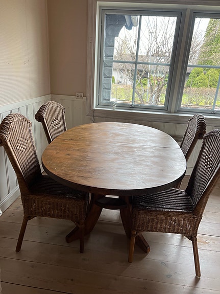 400 krBrunt betsat furu matbord med 4 rottingstolar brun IKEAKrylbo3 minLägg till i favoriter.Öppna annons