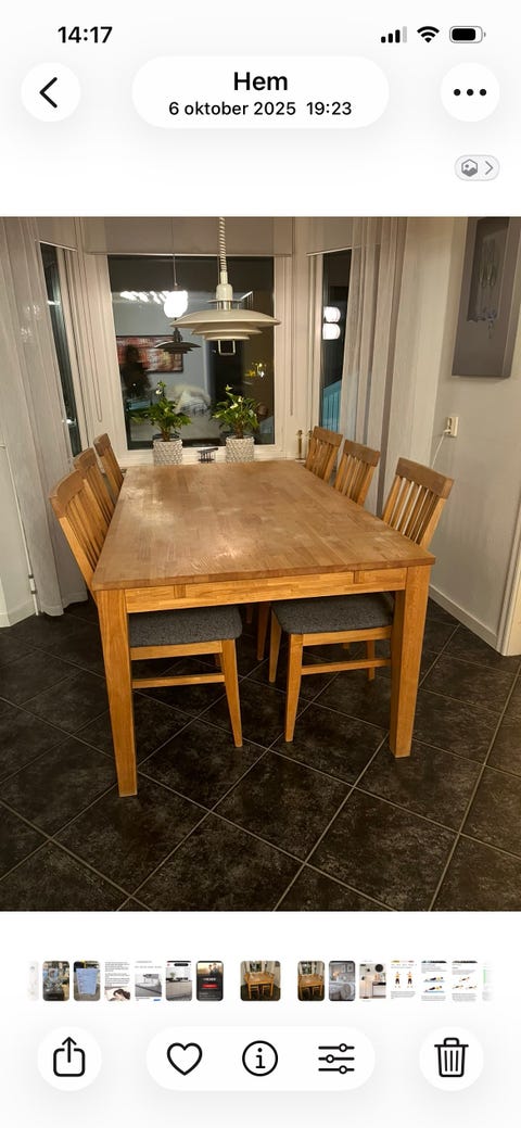 1 500 krMatgrupp i Ek, 6 stolar samt iläggsskiva IKEALinköping11 minLägg till i favoriter.Öppna annons