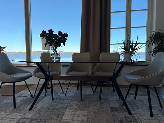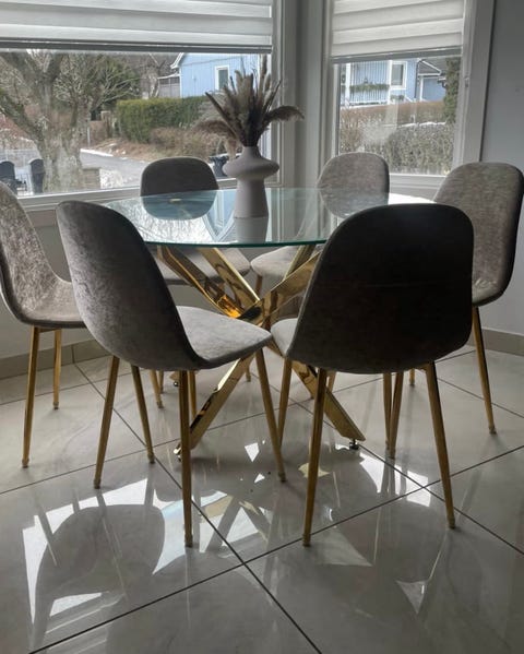8 000 krElegant matgrupp – glasbord med gulddetaljer + 6 stolar (nyskick)Angered13 minLägg till i favoriter.Öppna annons