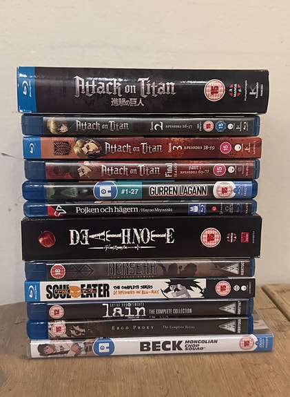 500 krAnime Blu-ray och DVD paket Attack on Titan, Death Note, Soul Eater m.fl.Segeltorp11 timLägg till i favoriter.Öppna annons
