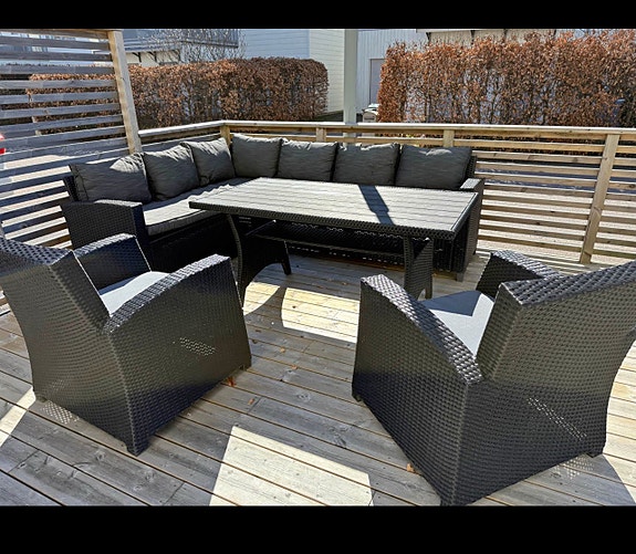 4 000 krHörngrupp utesoffa med bord konstrotting glasbordsskiva svartLinköping1 dagLägg till i favoriter.Öppna annons