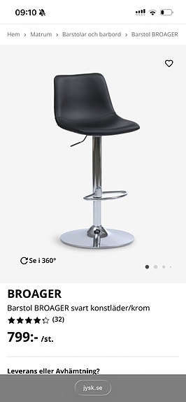 1 500 krBarstol BROAGER svart konstläder/krom justerbar höjd JyskJärfälla13 timLägg till i favoriter.Öppna annons