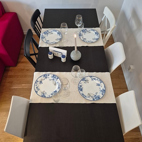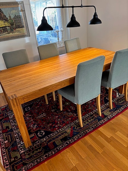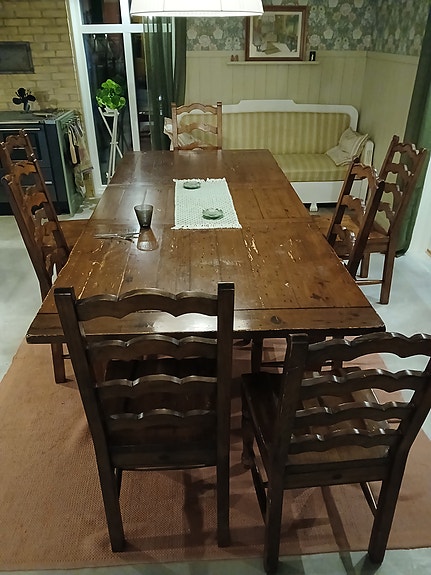 Matsalsgrupp ovalt träbord med 8 stolar brun