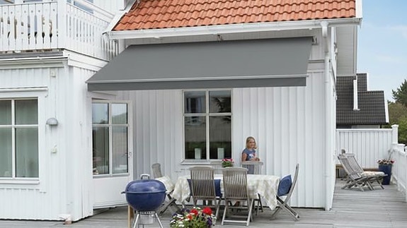 Terrassmarkis grått tyg