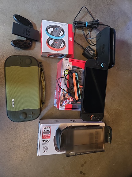 Nintendo Switch V2 + 2 extra Joy-Cons + 2 st spel + Sandisk utrymmeskort 128 gb
