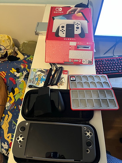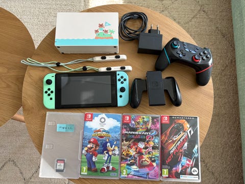 Nintendo Switch V2 + 2 extra Joy-Cons + 2 st spel + Sandisk utrymmeskort 128 gb