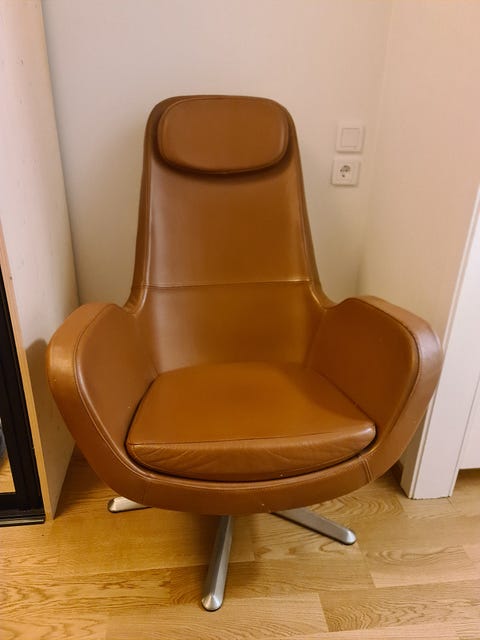 Skinnfåtölj på hjul