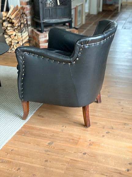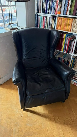 Svart skinnfåtölj i nyskick