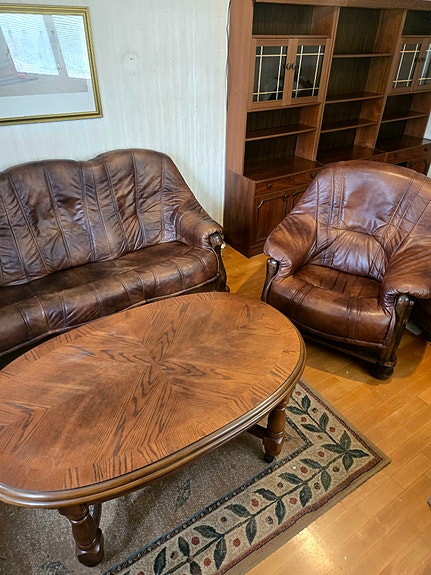Skinnsoffa + skinnfåtölj