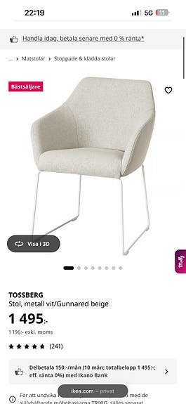 1 000 krBCN Stol KristaliaKullavik11 timReprobruket Möbelförsäljning ABLägg till i favoriter.Öppna annons