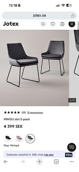 6 000 krJotex Vikdalen stolar x 4 JotexStockholm5 dagarBetald placeringLägg till i favoriter.Öppna annons