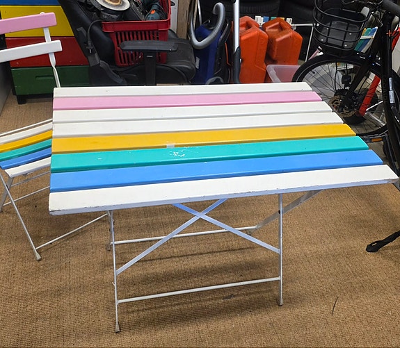 3 000 krTrädgårdsmöbelset bord och stolar flerfärgat metall IKEA 70-talPartille28 marLägg till i favoriter.
