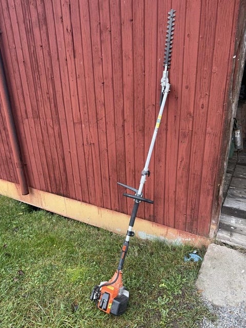 Trädgårdsredskap - från skottkärror till sopmaskiner och hängrännerensare kan köpas begagnade