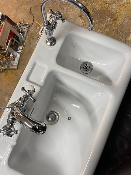 Handfat med blandare i perfekt storlek och stil kan hittas begagnat