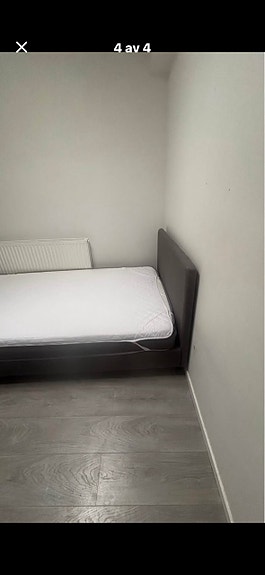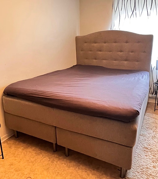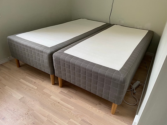Mio och IKEA säng med gavel grå