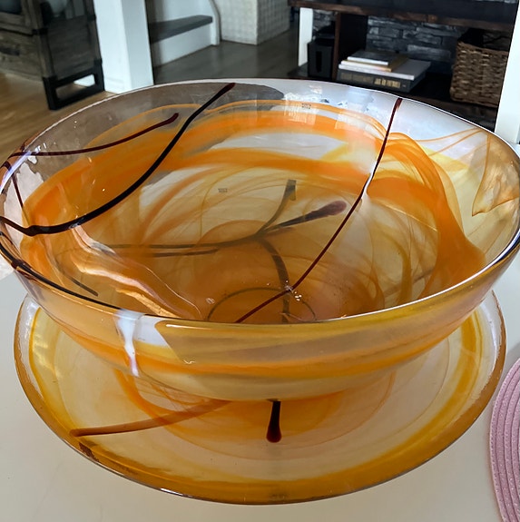 Skål och fat glas orange mönstrat