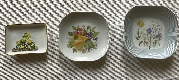3 somriga handmålade uppläggningsfat/assietter