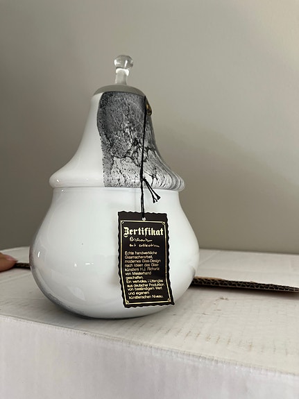 Vintage glasskål med lock, päronformad, av Hans Jürgen Richard