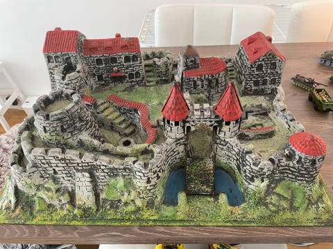 Retro riddarslott/borg med vallgrav och byggnader