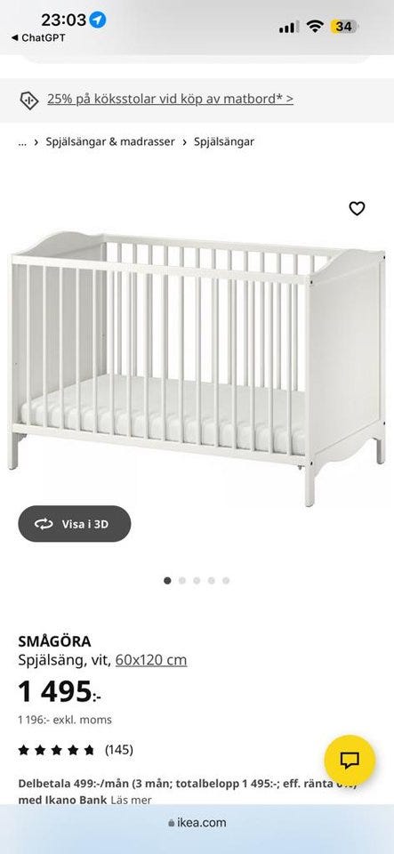 spjälsäng smågöra inkl madrass