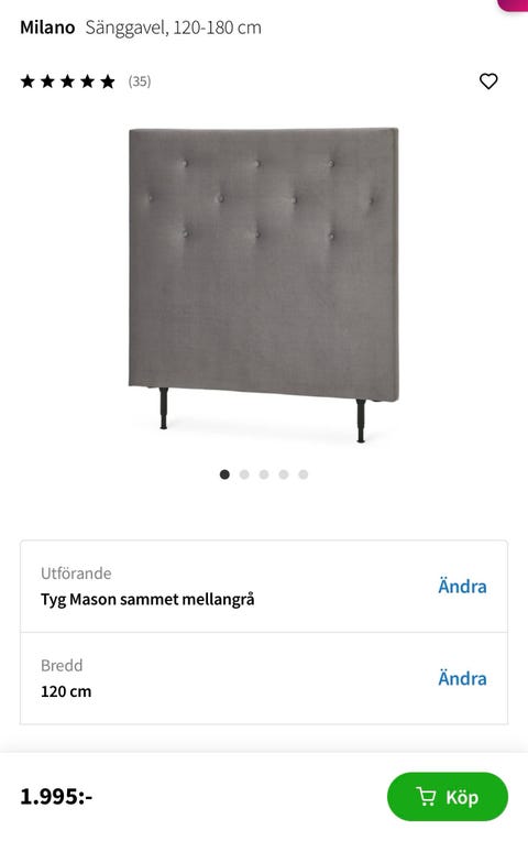 Sänggavel 180 cm
